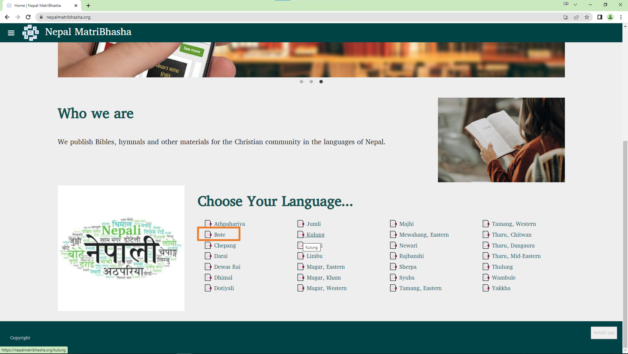 👉 बाइबल वेब एप बटनमा थिच्नुहोस्। तपाईंलाई अनलाइन बाइबल वेब पृष्ठमा रिडिरेक्ट गरिनेछ।