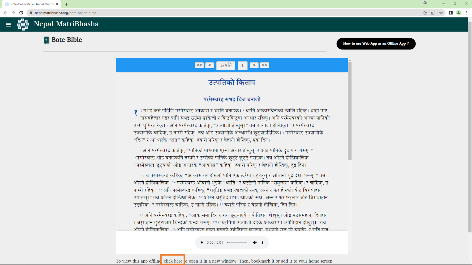 👉 "To view this app offline, click here" सम्म जानको लागि तल स्क्रोल गर्नुहोस् । लिङ्कमा थिच्नुहोस् र तपाईंलाई बाइबल वेब एपमा रिडिरेक्ट गरिनेछ।