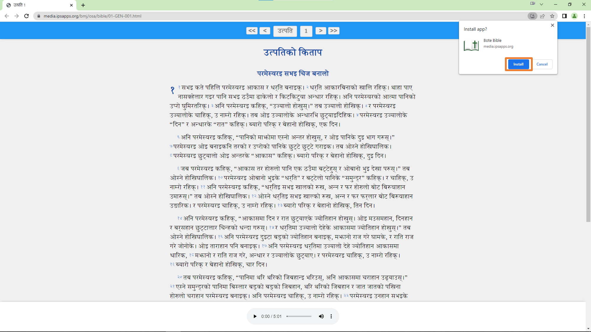 ✅ तपाईले विन्डोज ओएसमा बाइबल वेब एपलाई अफलाइन एपको रूपमा अर्थात् PWA (प्रोग्रेसिभ वेब एप) गुगल क्रोम ब्राउजर प्रयोग गरेर कसरी इन्सटल गर्न सक्नुहुन्छ?